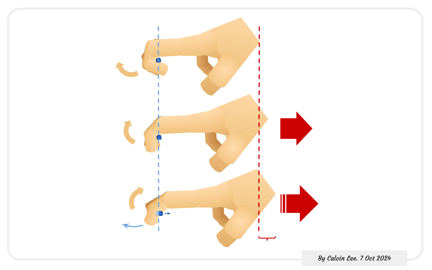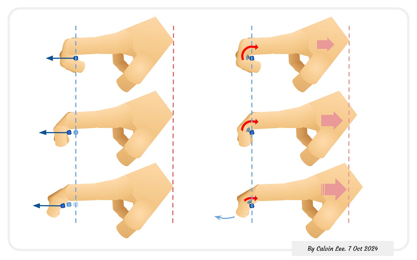 The hand and fingers then stay in this position as the shoulder and arm unit snaps back due to the holding forces of the back muscles. The holding intensity in the back keeps increasing...