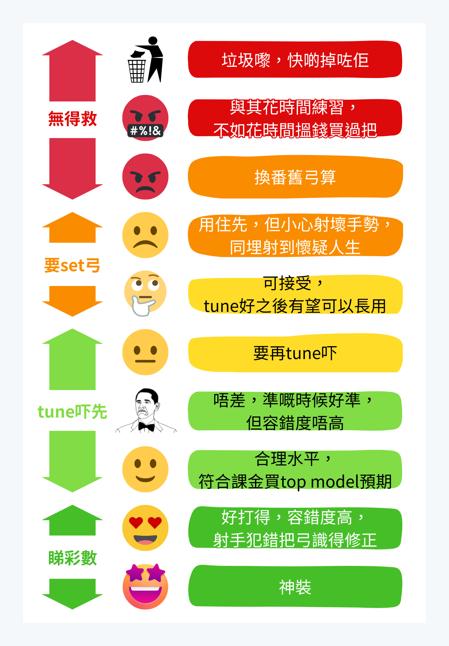 一直都覺得而家把弓未係太好射,仲有得tune, 襯兩場比賽中間有時間又再搞吓。