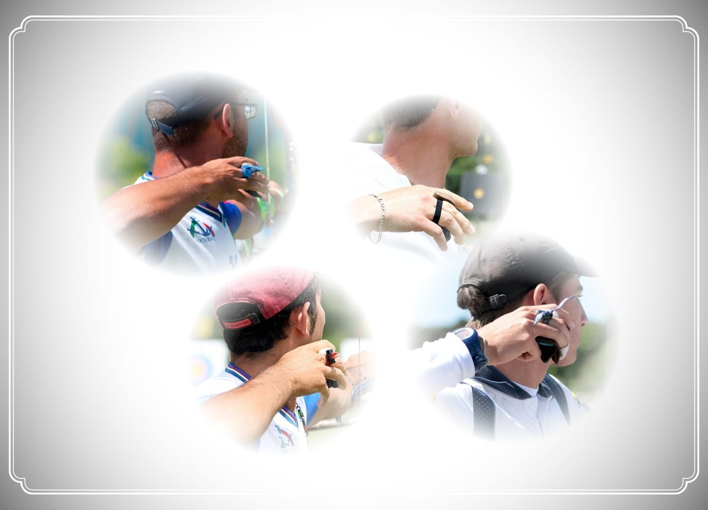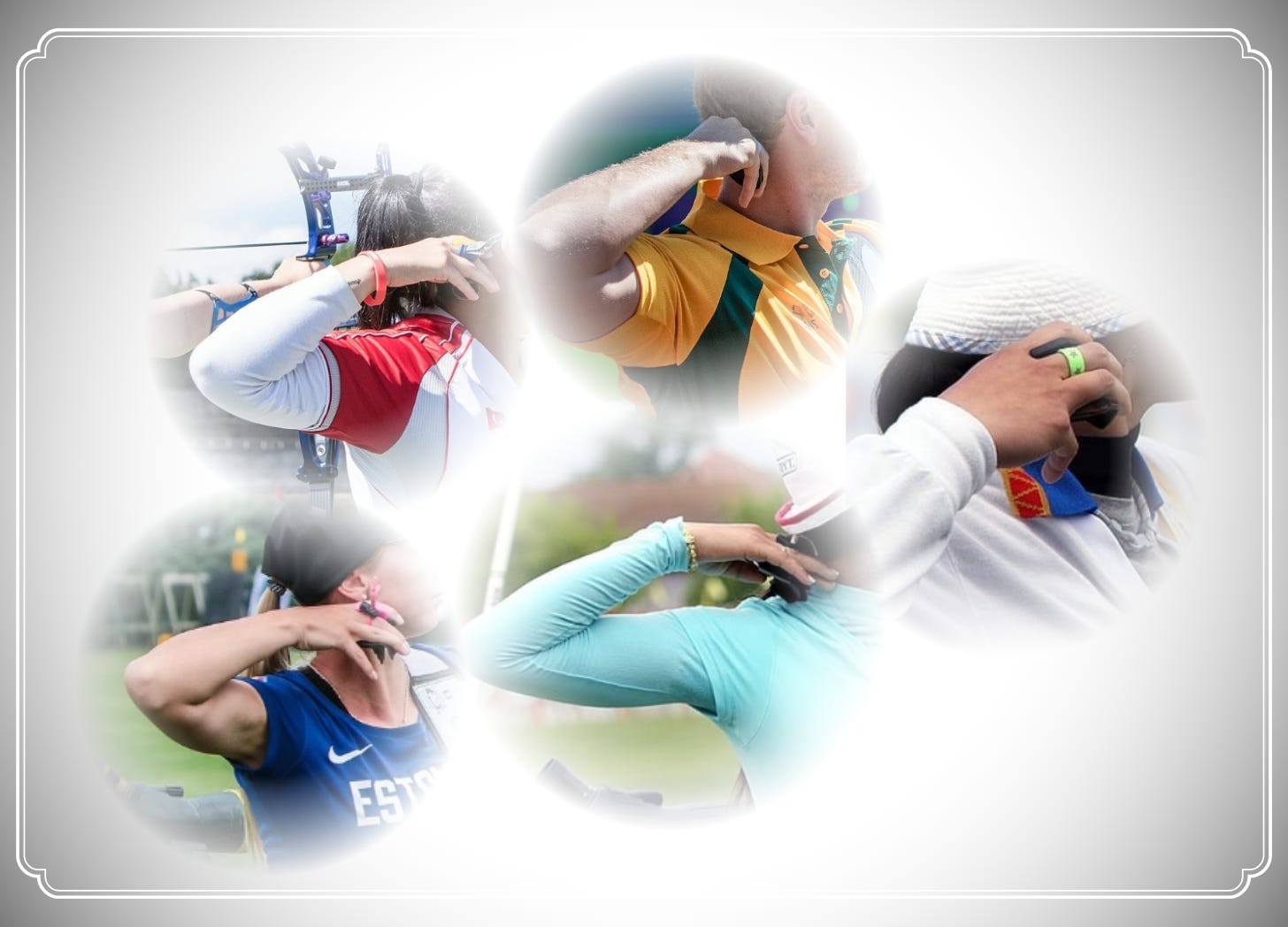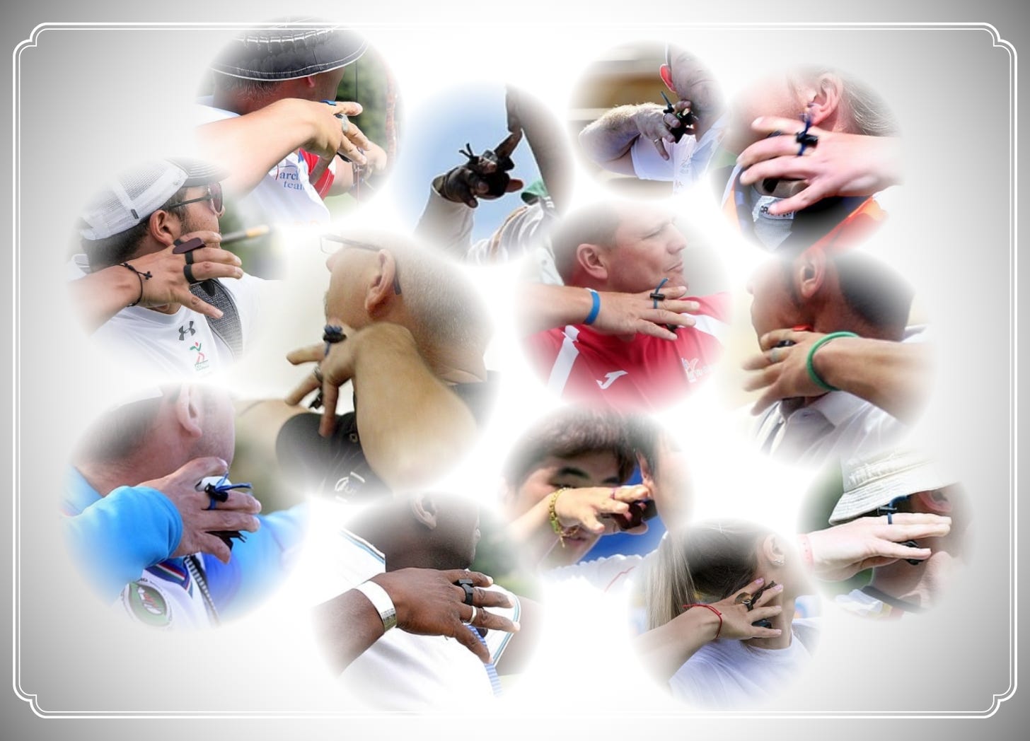 呢度嘅相都係黎自dutchtarget,都係國際賽嘅參賽射手,即有一定技術水平。我將相片按撒放動作特徵分類,既然動作技術有明顯分別,你又會唔會預期各群組射手調弓可能得出相近結果?一幅我覺得係教科書式鬆弦撒放;一幅主動打開手指拉放;一幅彈手;一幅只係用手及肩拉,背無繼續收;一幅跌手肘手掌內旋。你覺得邊幅打邊幅,又同唔同意我諗法?