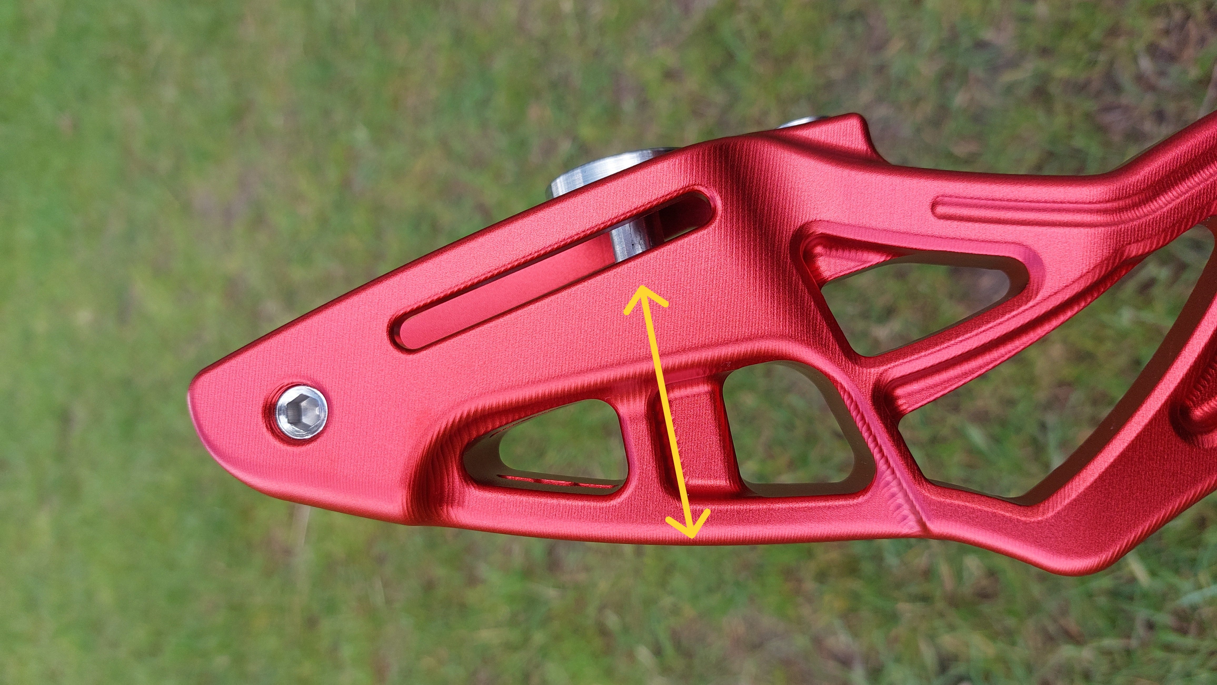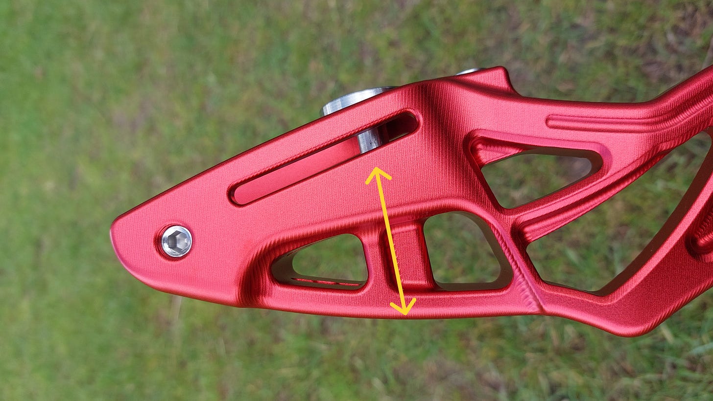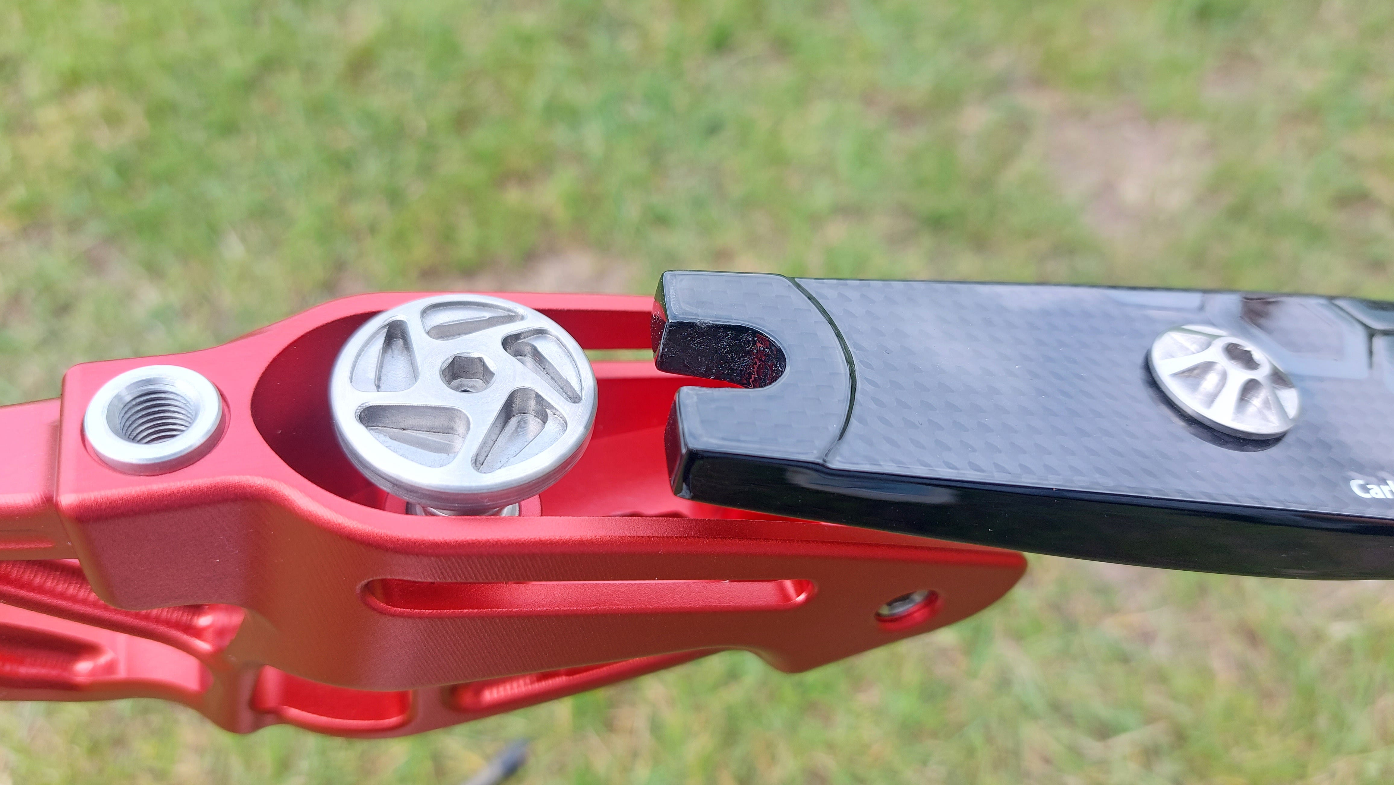 我把弓四粒螺絲只有一粒夠長。要自行解決都唔難,墊厚少少個窿等螺絲可以迫穩水平對準塊就可,不過作為一隻頂級弓身,呢個位出事確實係設計時考慮不周或者生產質素唔理想。其實睇番佢個窿位已經做咗斜邊,如果做得準螺絲夠長理應可以頂得好穩陣。