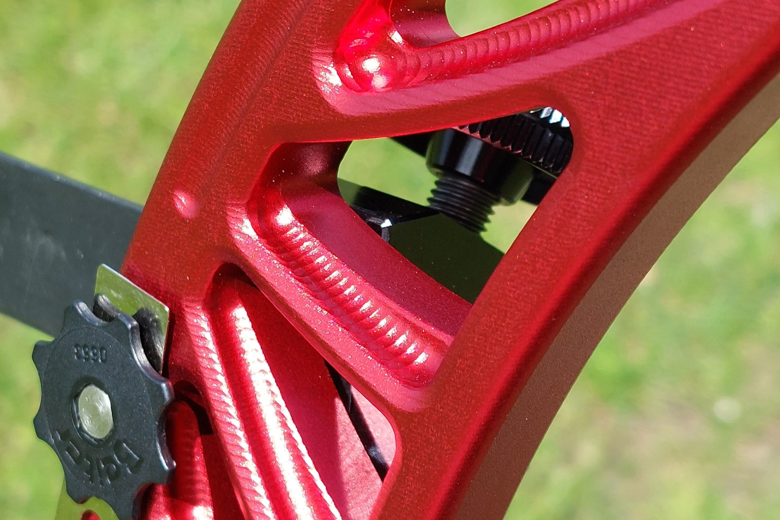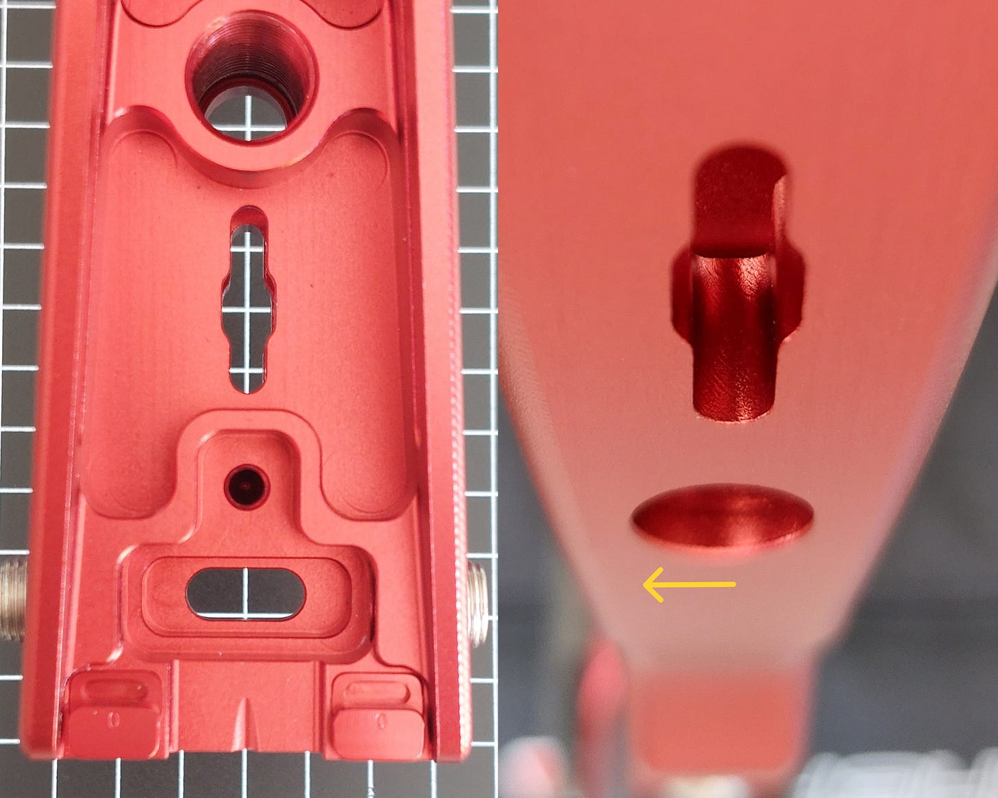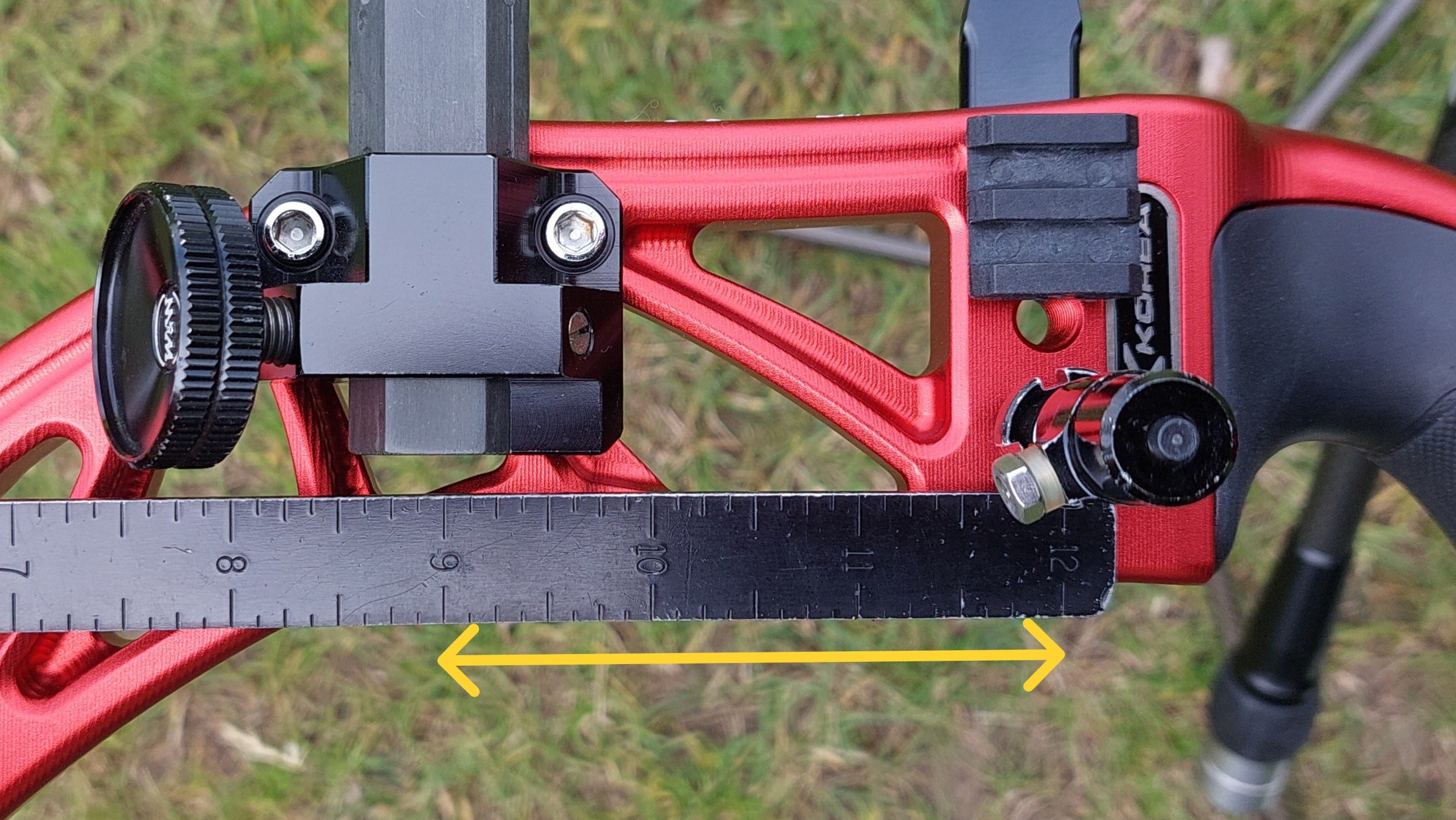 我把弓四粒螺絲只有一粒夠長。要自行解決都唔難,墊厚少少個窿等螺絲可以迫穩水平對準塊就可,不過作為一隻頂級弓身,呢個位出事確實係設計時考慮不周或者生產質素唔理想。其實睇番佢個窿位已經做咗斜邊,如果做得準螺絲夠長理應可以頂得好穩陣。